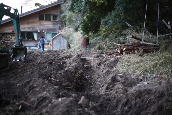 そこから、手探りでの土中環境の改善が始まりました。 本当は少しずつ自然に掘り起こされてきた土を掘り起こしたくはなかったのですが、「水の通り道」を作っていくことから。