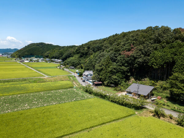 H& Fieldは、事務所を中心に背後には山を背負い、目の前には庭、そして田畑が広がっています。