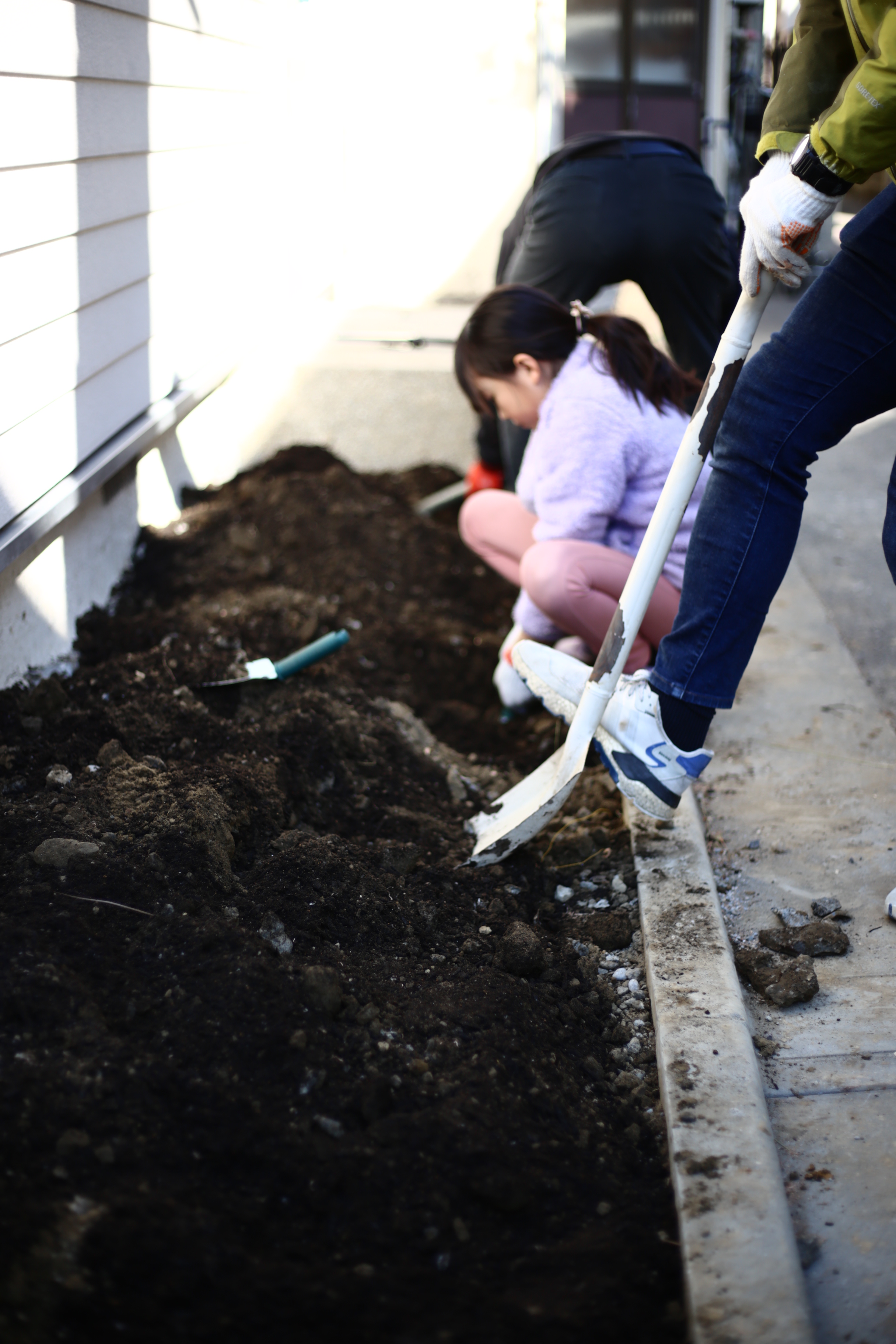 自分たちだけで楽しむのではなく、風景も、実りも、時には花束としても、ご近所さんにお裾分けできる庭へ。もう間もなく、建て主さんにバトンタッチです。この場所に、温かな光が灯る時間を楽しみにしています。