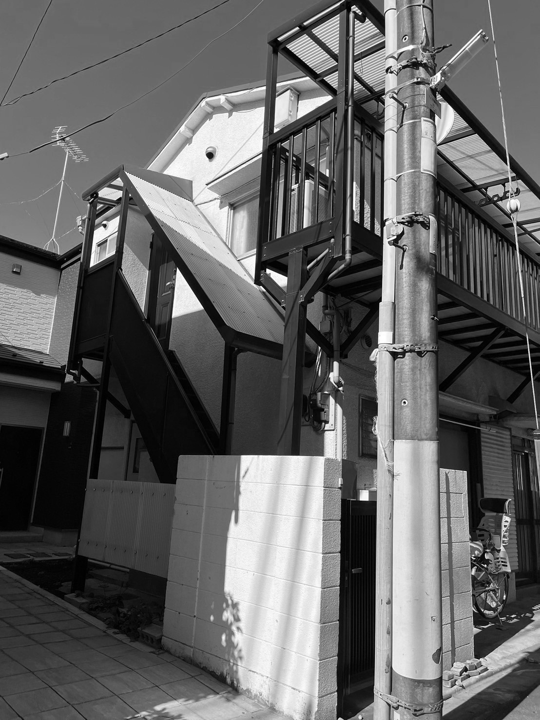 敷地は、路地の先にある陽当りの良い場所。 かつて美容室だったというその空間には、人が自然と佇むような記憶が残っていました。そこで、人を招きやすいよう玄関を広めに設け、扉を開くと畳の間と一体で使える大らかなプランへ。