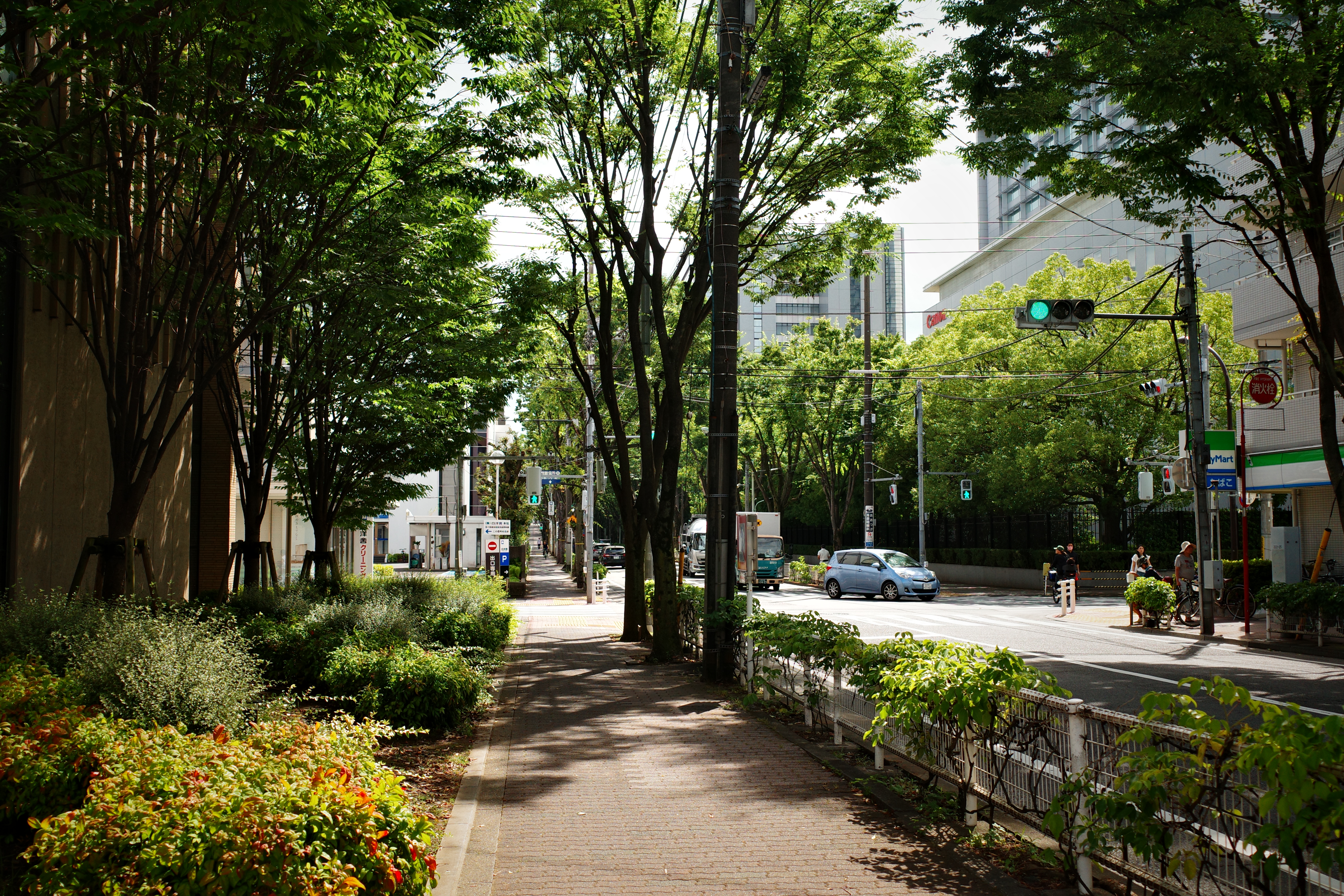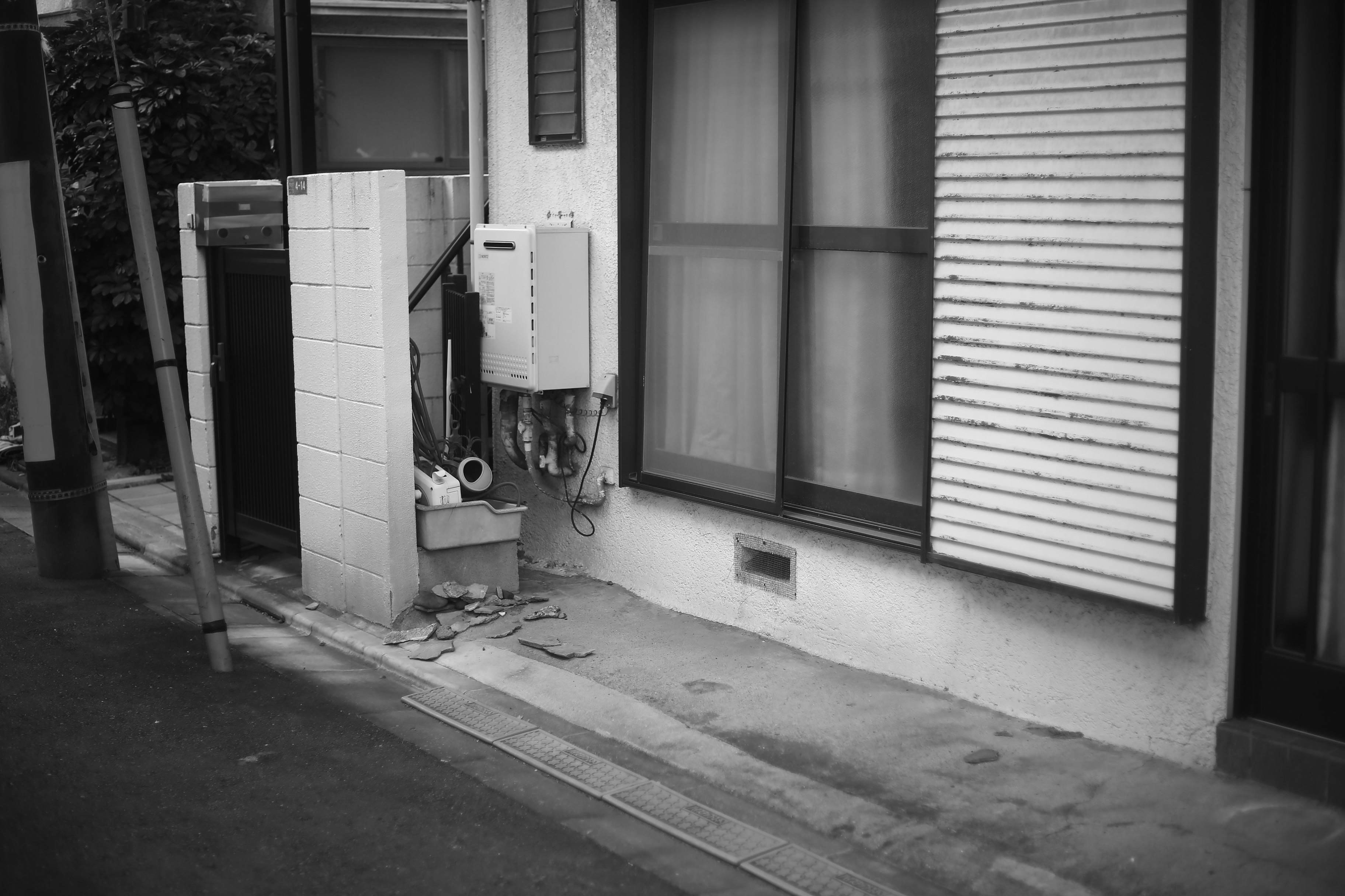 外構のテーマは、「街の行燈(あんどん)のような場」。 かつてモルタルで固められていた路地前の地面は、コンクリートを剥がして土中環境を改良しました。多摩川周辺に自生するツツジや、食べられる実のなる木、香りの良い植物を植え、小さな森の入り口をつくっています。